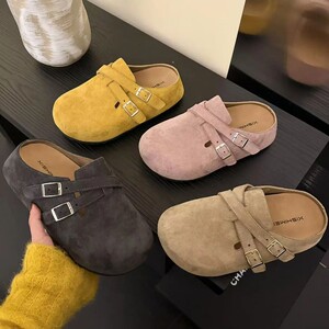 软皮厚底包头半拖鞋女外穿2025夏季新款复古增高懒人一脚蹬勃肯鞋