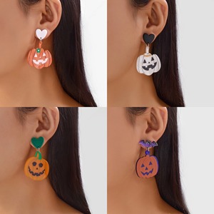 跨境万圣节 创意蝙蝠南瓜蜘蛛幽灵不对称亚克力耳环 时尚耳饰批发