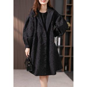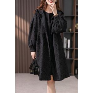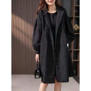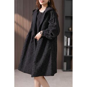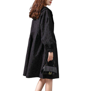 设计感提花风衣女中长款秋冬季新款韩版休闲宽松外套