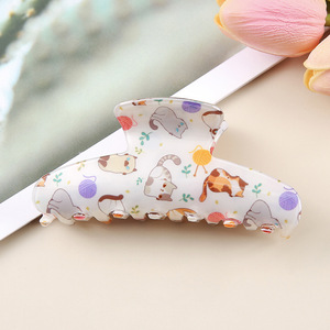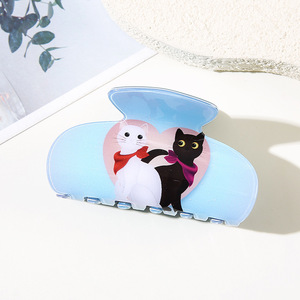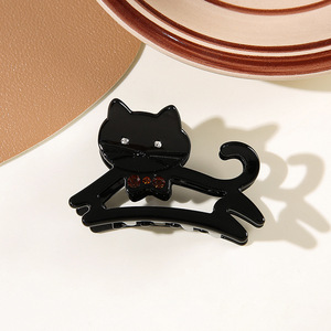 新法式镶钻可爱猫咪抓夹发抓镂空镶钻醋酸发夹少女盘发鲨鱼夹女发
