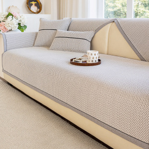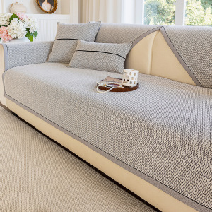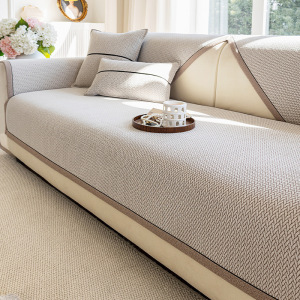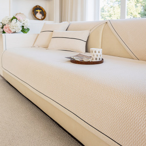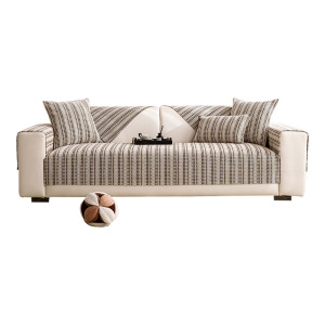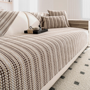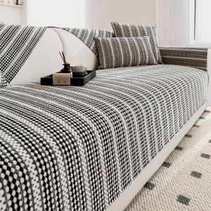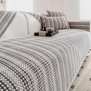 法式高级感条纹雪尼尔四季通用沙发垫盖布盖巾套罩固定防滑防猫爪