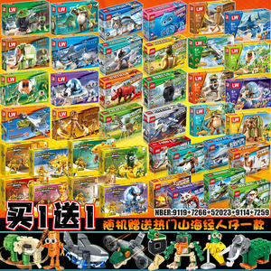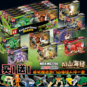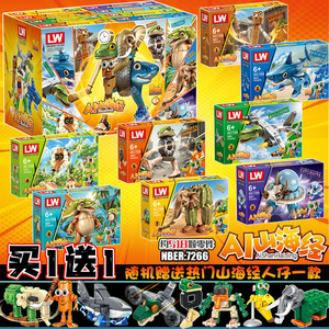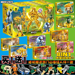 爆款外国山海经缝合怪黄金版木棍人鲨鱼全套盲盒合体积木拼装玩具