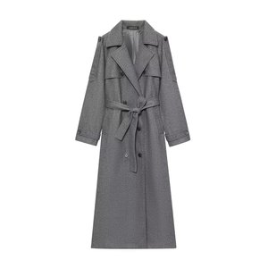 ins风跨境欧美风2025新款时尚气质女装批发复古毛呢腰带大衣外套