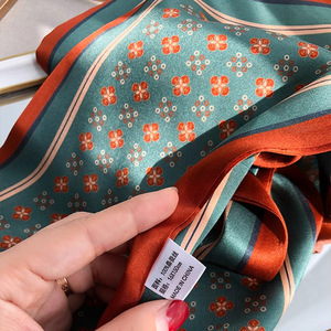 100%桑蚕丝真丝缎面15*145豆绿烟花长条围巾女春夏季双层双面丝巾
