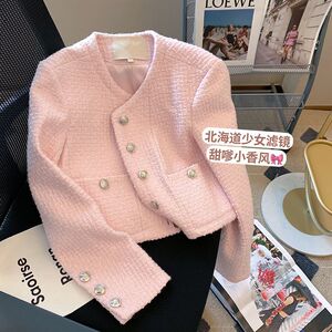 小香风粉色编织短款外套女秋季年新款时尚名媛气质感上衣