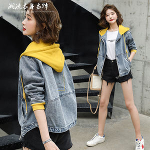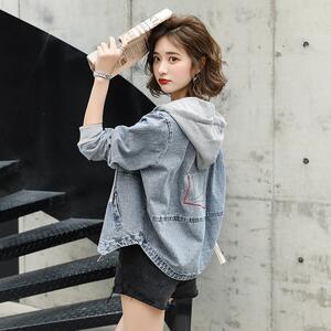 2025秋装新款韩版宽松短款带帽休闲时尚春秋长袖上衣潮牛仔外套女