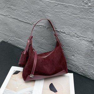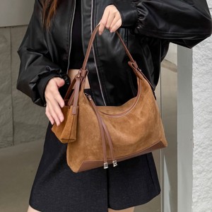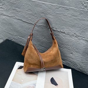 尾单大容量麂皮腋下包女复古通勤真皮托特包秋冬季百搭牛皮单肩包