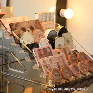 化妆品收纳盒亚克力桌面彩妆刷粉饼分层梳妆台口红眼影盘置物架