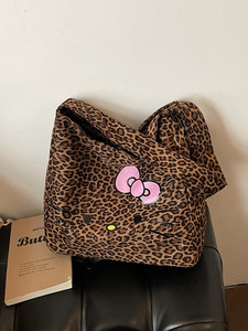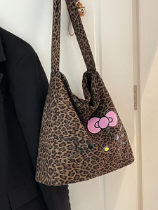 休闲大容量豹纹包包2025秋冬新款女式通勤单肩包松弛感托特水桶包