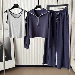 25秋季新款女士时尚洋气简约学院风减龄休闲运动三件套装0821f12