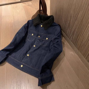 24秋冬新款金色凯旋门纽扣羊羔毛领子夹棉加厚牛仔外套