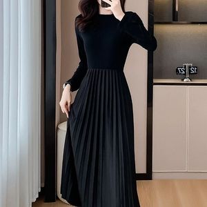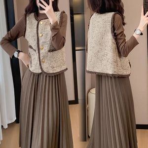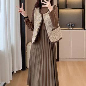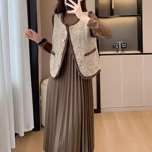 新款春秋季2025年时尚两件套休闲套装黑色外出百褶连衣裙套装马甲