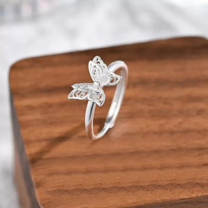小清新蝴蝶戒指素戒女时尚食指日常百搭小众开口韩版清新气质新款