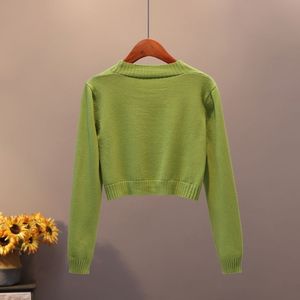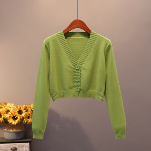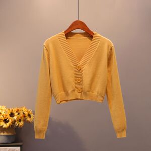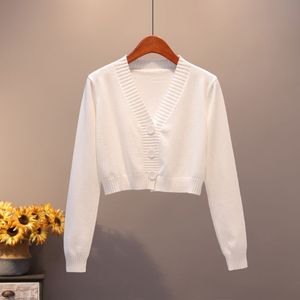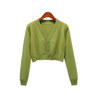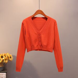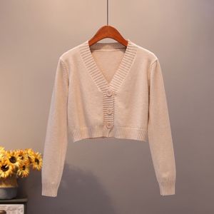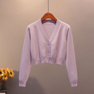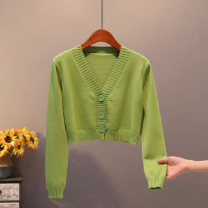 高腰短款开衫女2025春秋时尚V领针织衫外搭韩版薄款毛衣小款外套