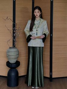 新款高级茶系穿搭一整套新中式国风刺绣外套高腰半身裙套装 N8061