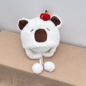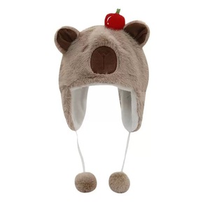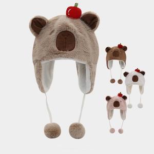 可爱卡皮巴拉毛绒帽儿童男女秋冬季卡通护耳帽防寒保暖雷锋帽批发