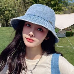 牛仔渔夫帽女韩版潮春夏天盆帽遮阳帽子牛仔帽子女日系百搭缝标帽