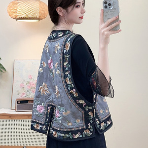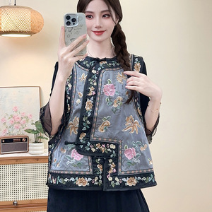 民族风复古刺绣马甲女2025秋季新款文艺时尚圆领斜襟盘扣宽松背心