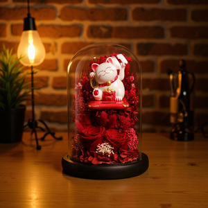 招财猫永生花摆件礼品情人节创意礼物玻璃罩玫瑰花生日礼物送闺蜜