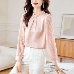 缎面衬衫女士长袖2025秋季新款衬衣漂亮别致雪纺小衫法式真丝上衣