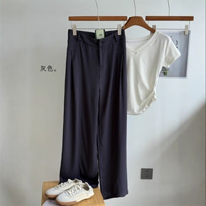 VIVI莱赛尔亚麻西装裤2025春秋女士垂感舒适显瘦休闲阔腿裤