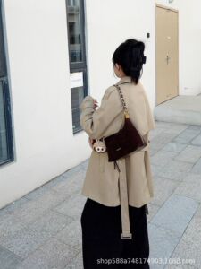 磨砂真皮月牙包腋下包女高级感时尚链条包复古麂皮绒斜挎包手拎包