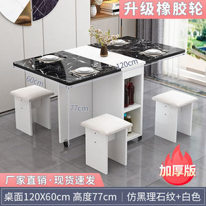 折叠餐桌家用小户型可移动带轮多功能一桌四椅简易长方形吃饭桌子