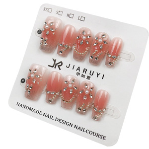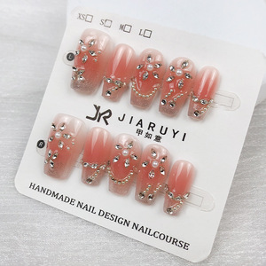 腮红渐变猫眼满钻纯手工穿戴美甲贴片法式甜美爆款可拆卸成品代发