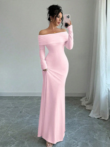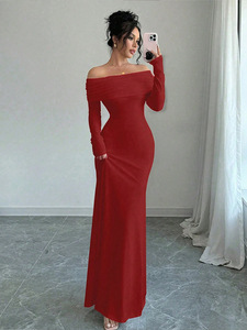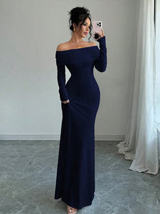 外贸礼服欧美女式女装 时尚优雅一字露肩交叉露背紧身长款连衣裙