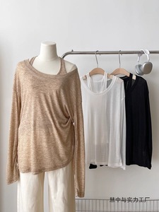 RENA慵懒松弛感薄款无袖背心长袖T恤两件套秋季气质纯色防晒罩衫