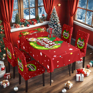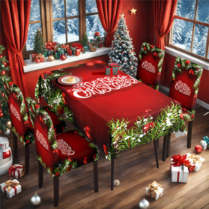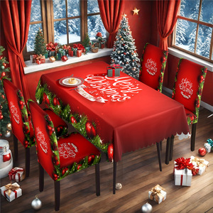 2025新款圣诞桌布椅套经典红色圣诞餐桌布防水台布弹力椅套批发