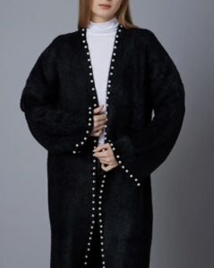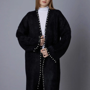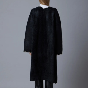 钉珠仿水貂绒针织开衫女2025秋冬新款长款韩版宽松设计感气质外套
