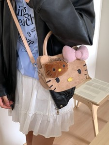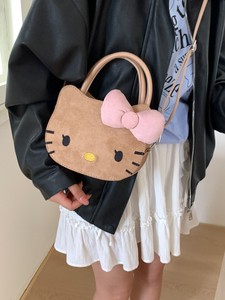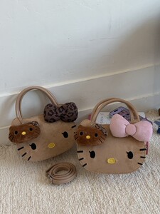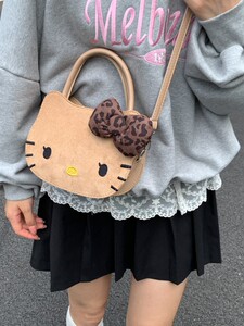 软妹风可爱卡通猫咪手提包女生甜美时尚豹纹蝴蝶结可爱斜挎包礼物