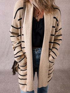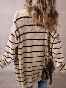 冬季新款条纹拼色保暖开襟毛衣女2025欧美休闲宽松百搭针织开衫女