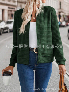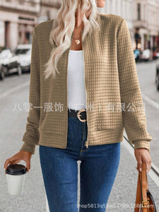 现货批发亚马逊热销新款欧美女装长袖拉链纯色拼接开衫纯色外套女