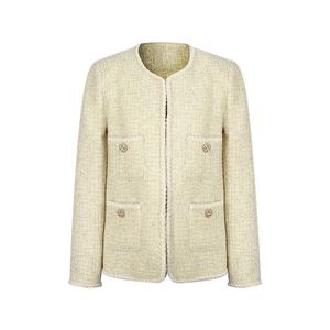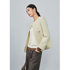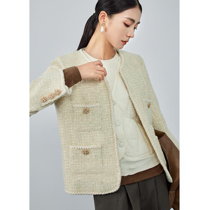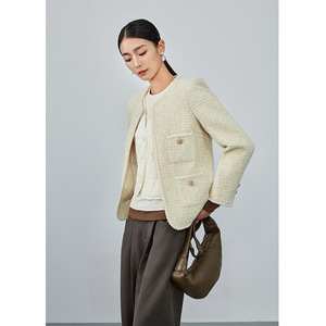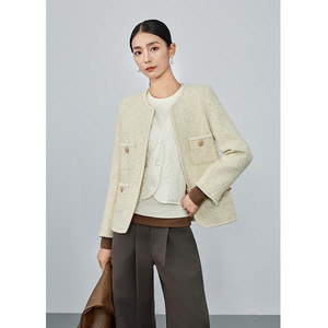小香风圆领长袖暗扣短外套女2025秋冬季新款高级感羊毛呢时尚上衣