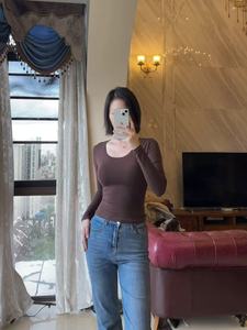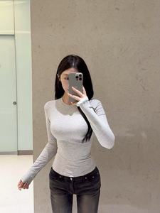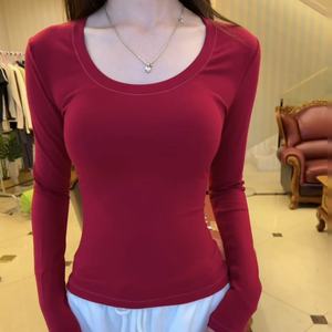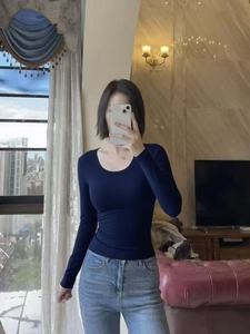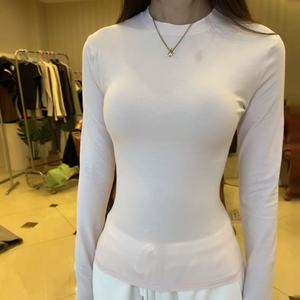 skims 卡戴珊cotton 长袖T恤弹力修身显瘦春夏圆领U领正肩高弹
