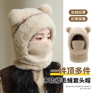 儿童毛线针织帽女童男孩秋冬围脖一体连帽宝宝防风护耳保暖套头帽