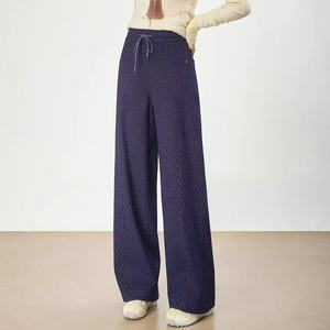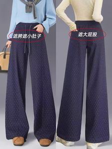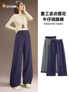 重工波点提花牛仔阔腿裤五只白鹅2025秋季磨毛小个子显腿长休闲裤