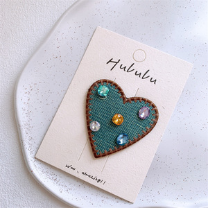 新款儿童牛仔烫钻蝴蝶结爱心发夹女童侧边刘海夹宝宝碎发BB夹发卡