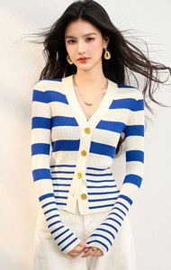 实拍◆有现货◆25秋季新品V领条纹提花气质休闲针织开衫女