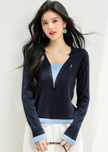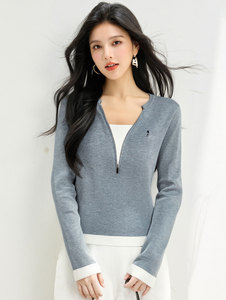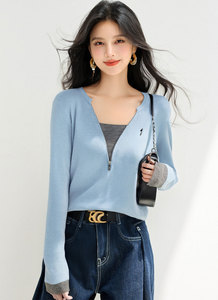 实拍◆有现货◆假两件长袖针织衫女2025新款设计感V领撞色打底衫