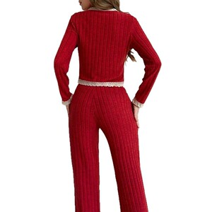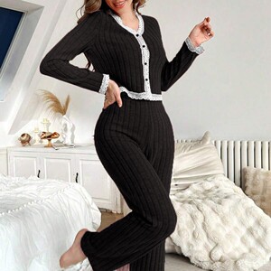 亚马逊热卖款温柔风复古蕾丝边开衫新款2024春秋双长女士睡衣套装