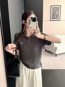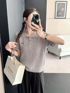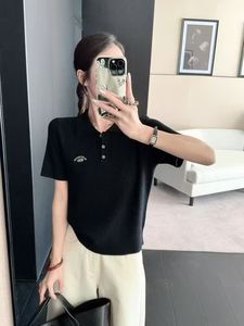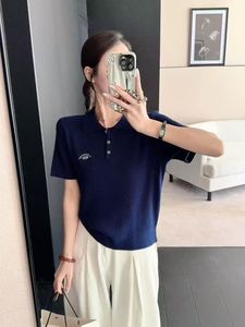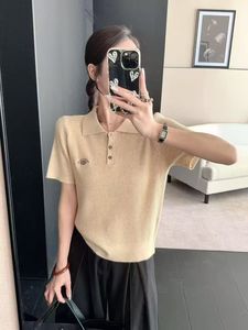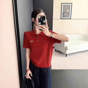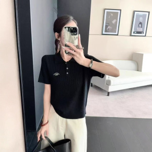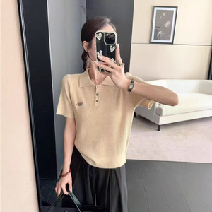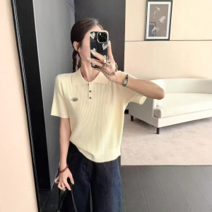 早秋衬衫领冰丝针织衫短袖女2025新款t恤秋时尚洋气宽松体恤上衣