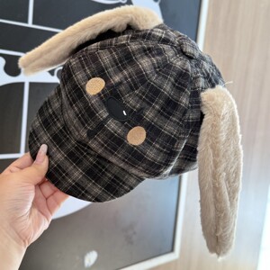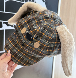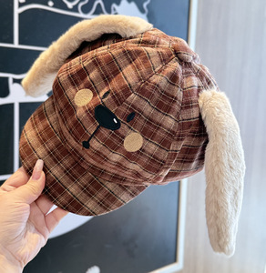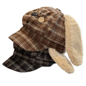 2025新款可爱格纹秋冬兔子八角帽子女甜美保暖显脸小日系画家帽