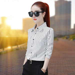 条纹衬衫女长袖春装新款2025百搭修身职业装白衬衣雪纺衫气质上衣