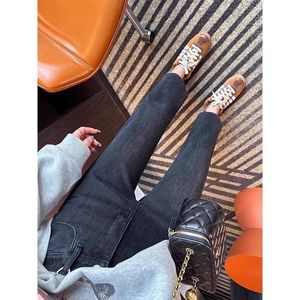 黑灰色九分直筒牛仔裤女秋季新款胖mm梨型身材高腰显瘦弹力烟管裤