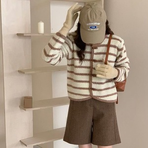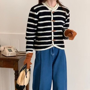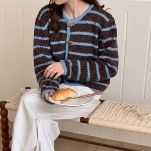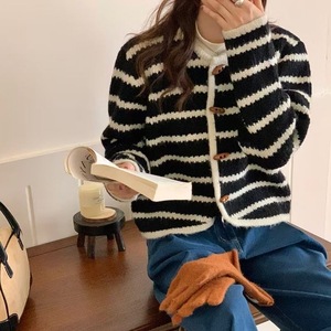 圆领条纹毛衣女2025秋冬新款韩系开衫外穿长袖针织衫宽松百搭上衣