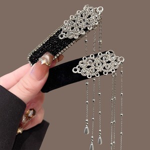新中式银色水滴珍珠流苏发夹民族风侧边夹长款刘海夹蒙古族发饰女
