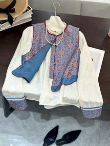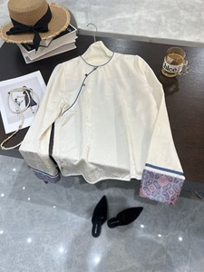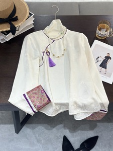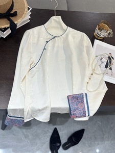 南油原创设计重磅人丝袖口拼署锦新中式国风时尚打底衫上衣秋季